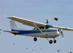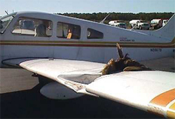| A wildlife strike occurs when an aircraft and an animal collide or when wildlife has a negative effect on flight. Bird strikes are not a new phenomenon. The first documented bird strike occurred in 1905, when Orville Wright flew over a corn field near Dayton, Ohio. The FAA estimates that birds and other wildlife cause over $500 million in damage to US civil aviation annually. These strikes can put the lives of crew members and passengers at risk. |